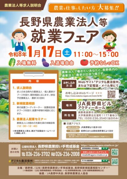 農業法人等で働きたい方!長野県農業法人等就業フェアを開催します!