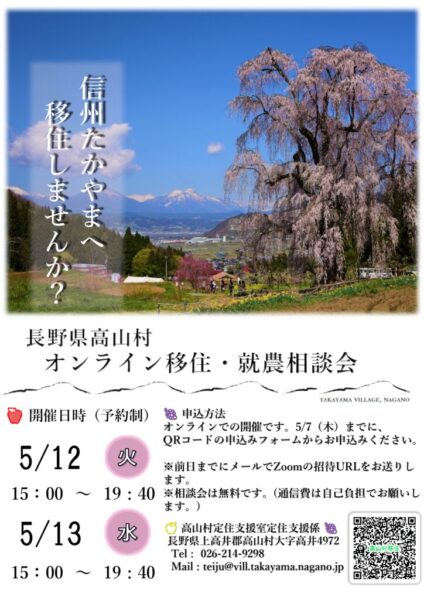 【長野県高山村オンライン移住・就農相談会】を開催します