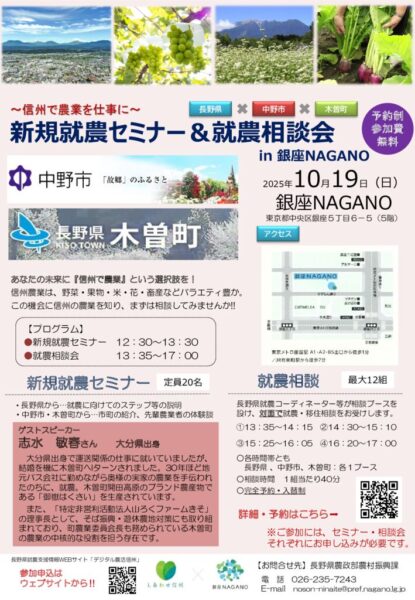 東京で開催!「新規就農セミナー&就農相談会in 銀座NAGANO」<中野市・木曽町とコラボ>