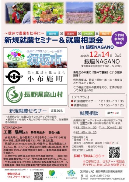東京で開催!「新規就農セミナー&就農相談会in 銀座NAGANO」<須坂市・小布施町・高山村とコラボ>