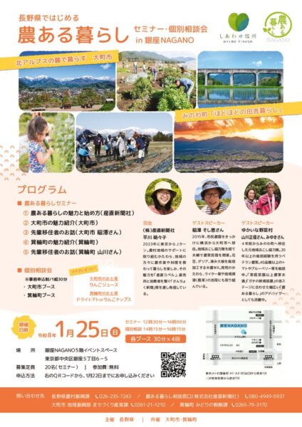 長野県 × 大町市・箕輪町「農ある暮らしセミナー&個別相談会」@銀座NAGANOを開催します!